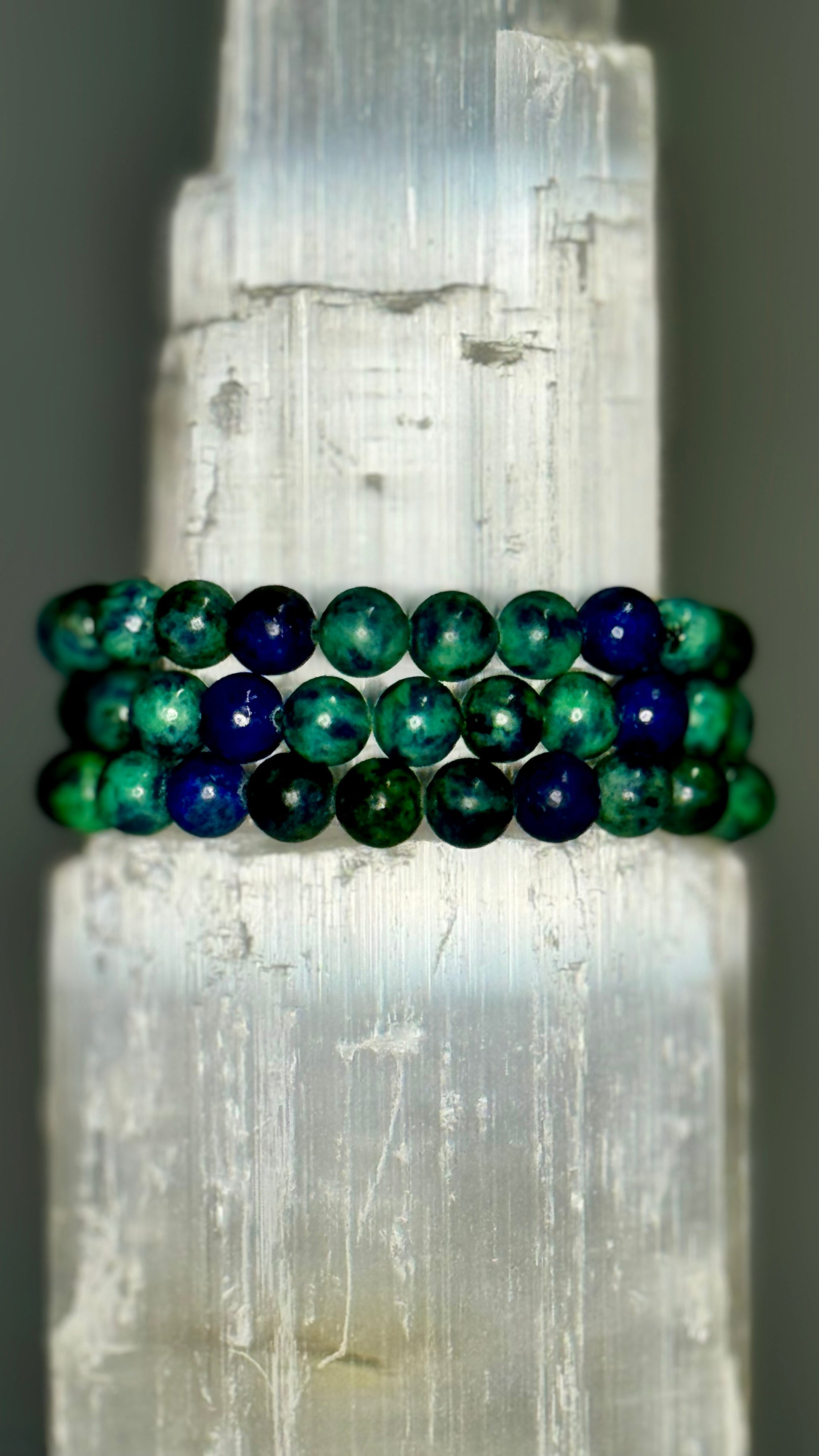 10mm Azurite & Malachite Crystal Beaded Bracelet. Each bracelet will be intuitively chosen when purchased.