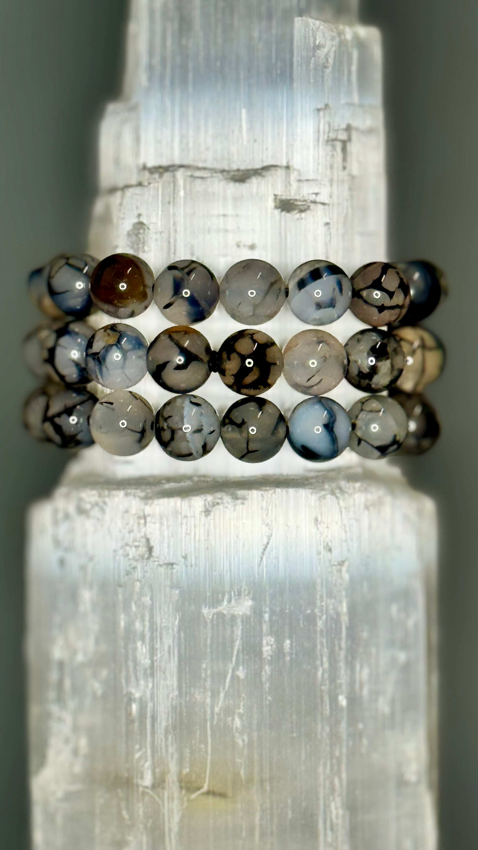 10mm Dragon Vein Agate Crystal Beaded Bracelet. Each bracelet will be intuitively chosen when purchased.