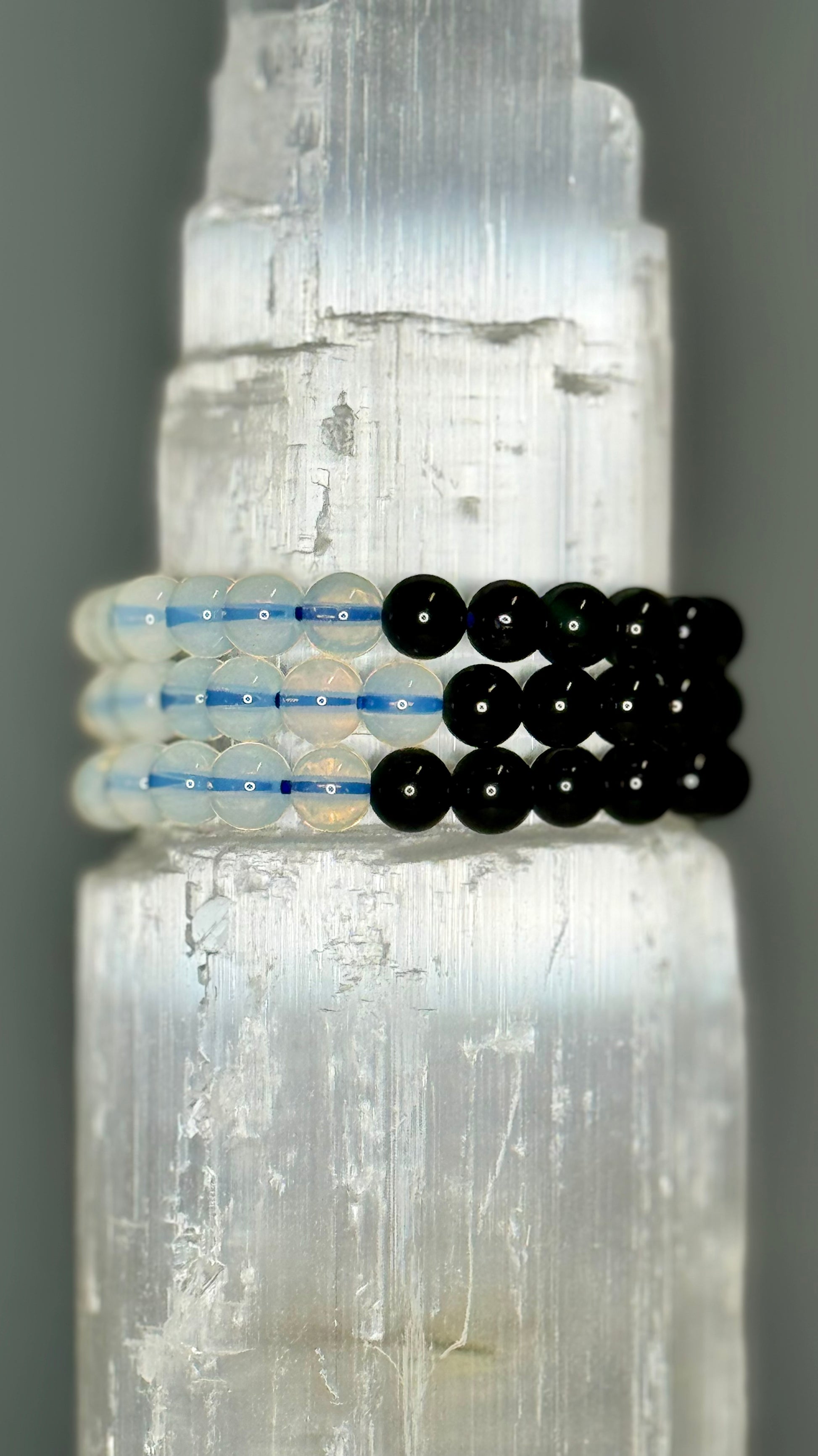 8mm Opalite & Rainbow Obsidian Crystal Beaded Bracelet. Each bracelet will be intuitively chosen when purchased.