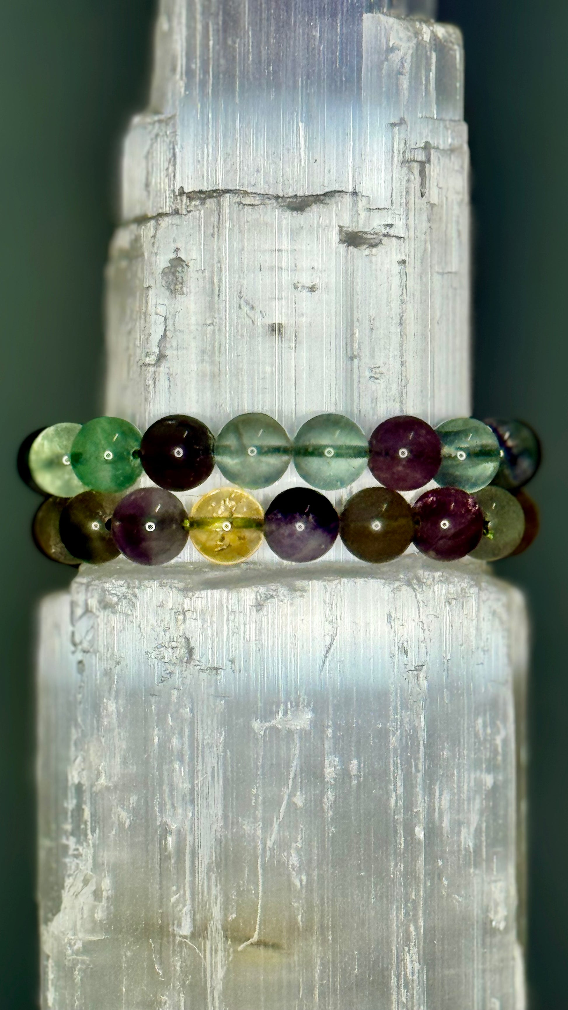 10mm Rainbow Fluorite Crystal Beaded Bracelet. Each bracelet will be intuitively chosen when purchased.