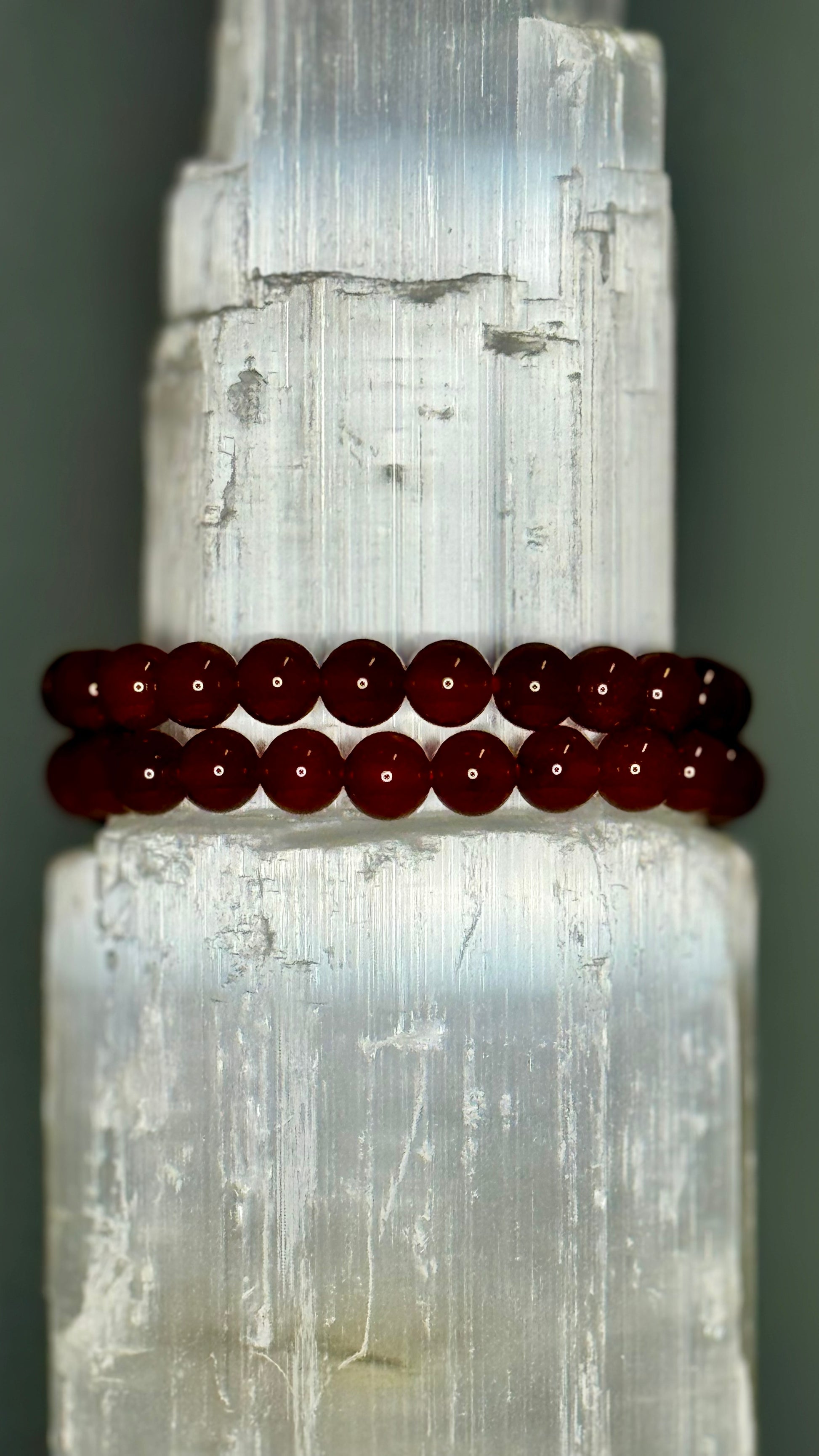 8mm Red Onyx Crystal Beaded Bracelet. Each bracelet will be intuitively chosen when purchased.