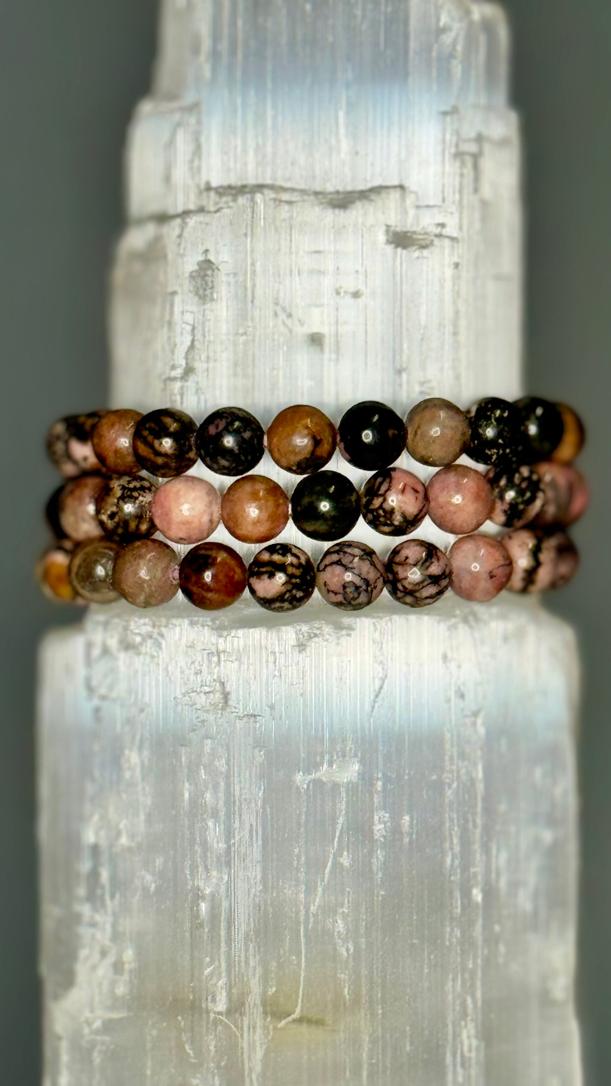 8mm Rhodonite Crystal Beaded Bracelet. Each bracelet will be intuitively chosen when purchased.