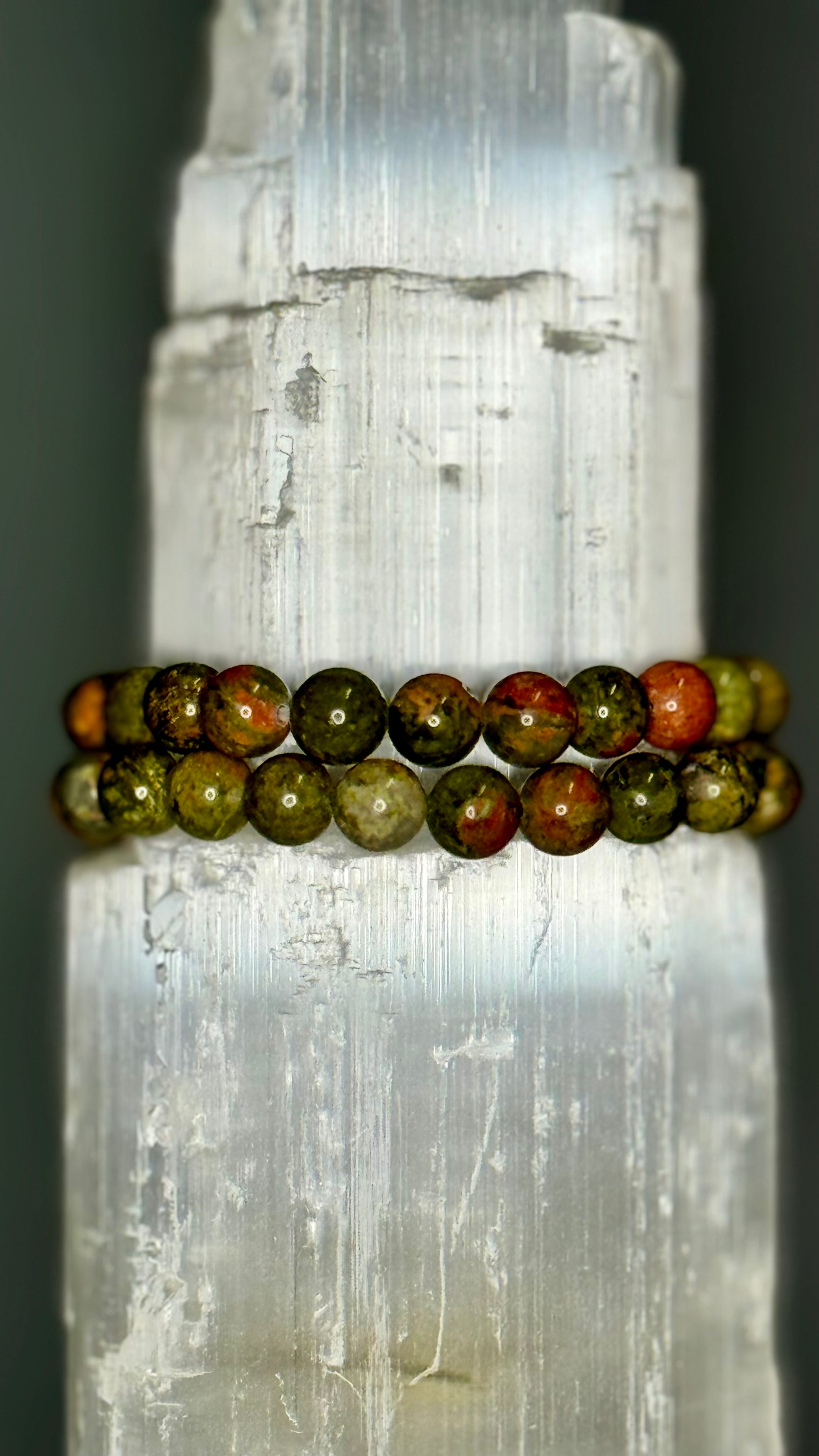 8mm Unakite Crystal Beaded Bracelet. Each bracelet will be intuitively chosen when purchased.